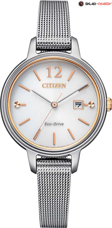 Стильные женские наручные часы Citizen на изящном стальном браслете миланского плетения. Система Eco-Drive, не требующая замены батарейки. Питание от солнечной энергии, запас энергии на 180 дней. Функция индикации заряда (EOL) и предотвращения перезарядки. Вес часов 39 грамм. Гарантия 1 год.