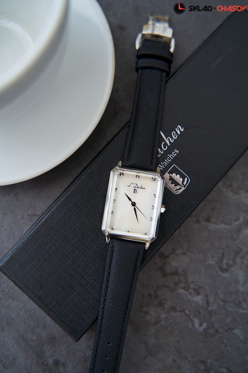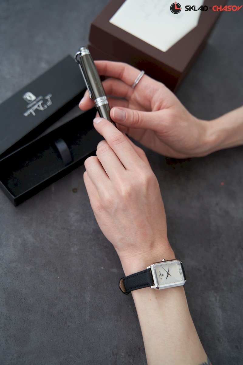 В часах серии Pyramide корпус сложной и эффектной формы — прямоугольник со скошенными углами. Он сделан из нержавеющей стали с зеркальной полировкой. Сапфировое стекло не менее интересно: оно повторяет форму корпуса и обладает гранями, на которых играют лучи света. Белый циферблат состоит из двух частей: пластины из натурального перламутра, напоминающие по форме песочные часы, и рисунок гильоше « парижские гвозди». Двенадцать фианитов, каждый в отдельной рамке, выполняют функцию маркеров часов. Ремешок часов сделан из натуральной кожи черного цвета с сафьяновым тиснением. Стальная застежка-клипса украшена логотипом бренда. Часы Pyramide, изящные и необычные, станут тем самым аксессуаром, с которым любой образ заиграет новыми красками.