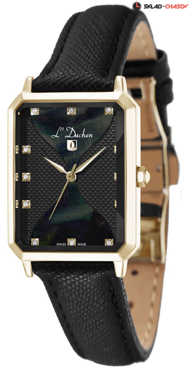 В часах серии Pyramide корпус сложной и эффектной формы — прямоугольник со скошенными углами. Он сделан из нержавеющей стали с PVD-покрытием из желтого золота и зеркальной полировкой. Сапфировое стекло не менее интересно: оно повторяет форму корпуса и обладает гранями, на которых играют лучи света. Черный циферблат состоит из двух частей: пластины из натурального перламутра, напоминающие по форме песочные часы, и рисунок гильоше «парижские гвозди». Двенадцать фианитов, каждый в отдельной рамке, выполняют функцию маркеров часов. Ремешок часов сделан из натуральной кожи черного цвета с сафьяновым тиснением. Стальная застежка-клипса украшена логотипом бренда. Часы Pyramide, изящные и необычные, станут тем самым аксессуаром, с которым любой образ заиграет новыми красками.