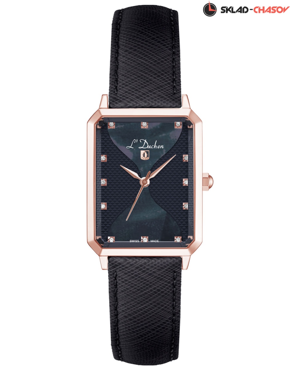 В часах серии Pyramide корпус сложной и эффектной формы — прямоугольник со скошенными углами. Он сделан из нержавеющей стали с PVD-покрытием из розового золота и зеркальной полировкой. Сапфировое стекло не менее интересно: оно повторяет форму корпуса и обладает гранями, на которых играют лучи света. Черный циферблат состоит из двух частей: пластины из натурального перламутра, напоминающие по форме песочные часы, и рисунок гильоше «парижские гвозди». Двенадцать фианитов, каждый в отдельной рамке, выполняют функцию маркеров часов. Ремешок часов сделан из натуральной кожи черного цвета с сафьяновым тиснением. Стальная застежка-клипса украшена логотипом бренда. Часы Pyramide, изящные и необычные, станут тем самым аксессуаром, с которым любой образ заиграет новыми красками.
