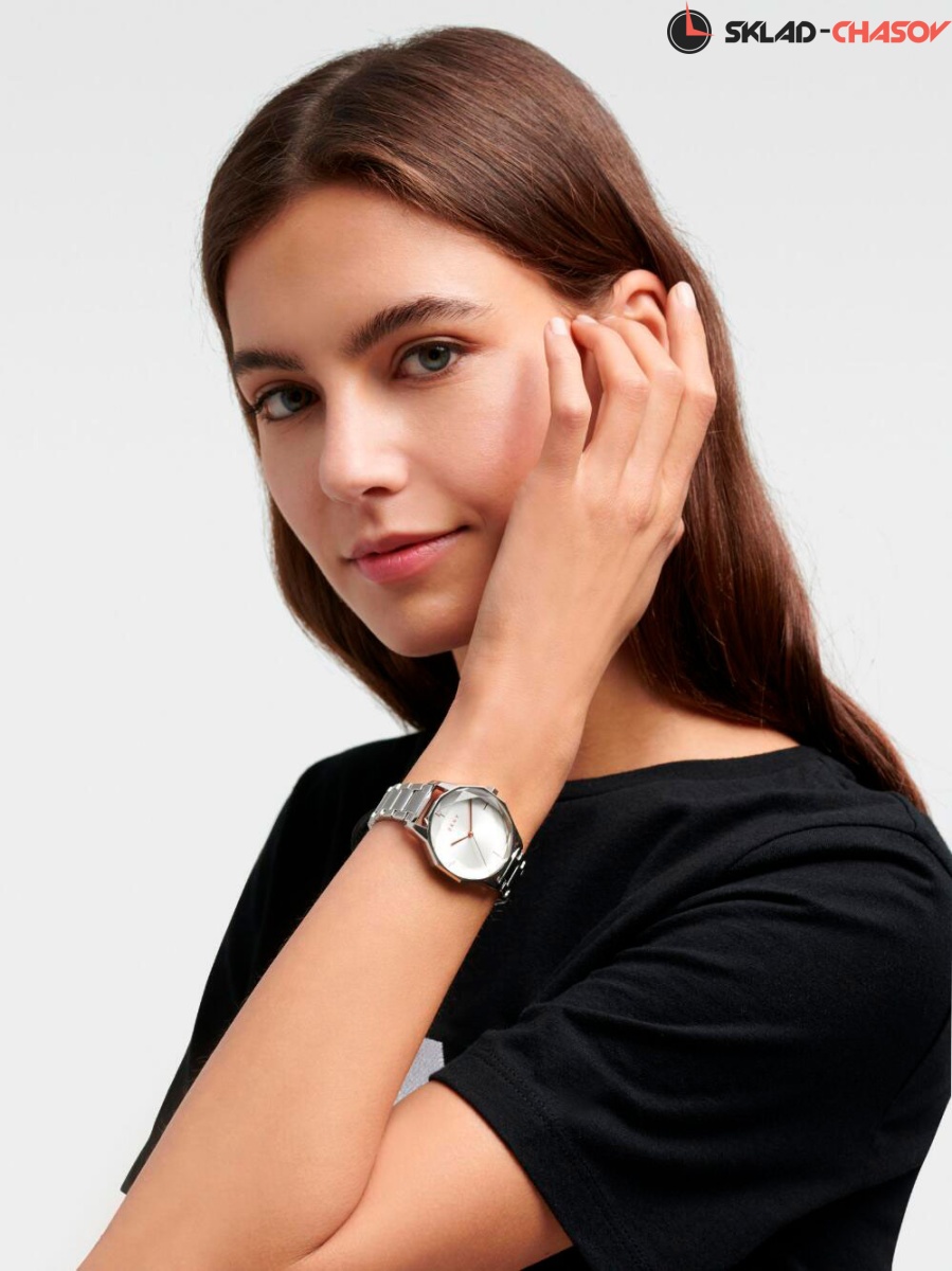 Эти стильные часы с нестандартным корпусом и аккуратным дизайном добавят нотку свежести в ваши серые будни. Round Cityspire. Женские наручные часы. Циферблат серебристого цвета с золотистыми стрелками и метками. Корпус и браслет выполнены из стали.