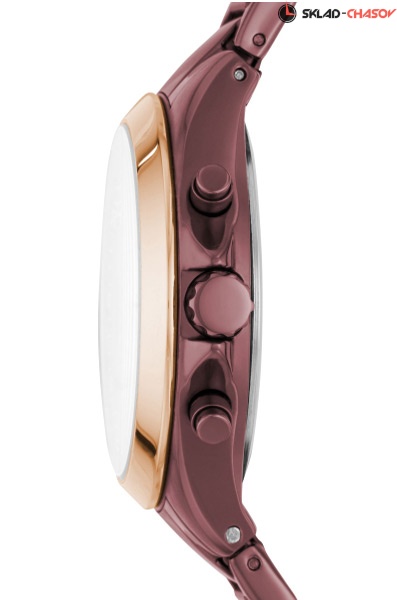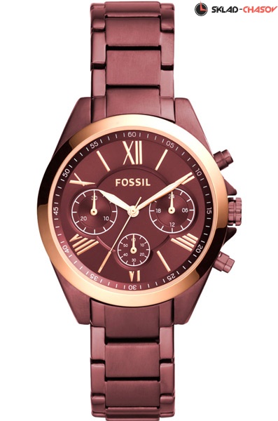 Женские кварцевые наручные часы с хронографом (секундомером) Fossil BQ3281. На данной модели отображается время суток (24-х часовая шкала). Секундомер может отсчитывать до 29 минут 59 cек. Стрелки покрыты люминесцентным напылением (светятся в темноте). На корпус и браслет нанесено стойкое PVD покрытие. Водонепроницаемость WR50 (5 атм).