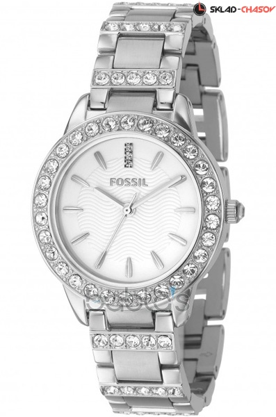 Женские кварцевые наручные часы Fossil ES2362. Корпус и браслет украшен камнями. Водонепроницаемость WR50 (5 атм).