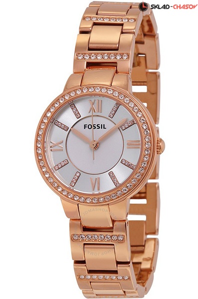 Женские кварцевые наручные часы Fossil ES3284. Корпус и браслет украшен камнями. Нанесено стойкое PVD покрытие. Водонепроницаемость WR50 (5 атм).