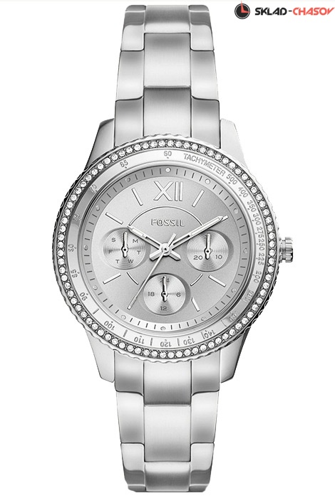 Женские кварцевые наручные часы Fossil ES5108 коллекции Stella Sport Multifunction. На данной модели отображается дата, день недели и время суток (24-х часовая шкала). Корпус украшен кристаллами. Стальной браслет. Водонепроницаемость WR50 (5 атм).