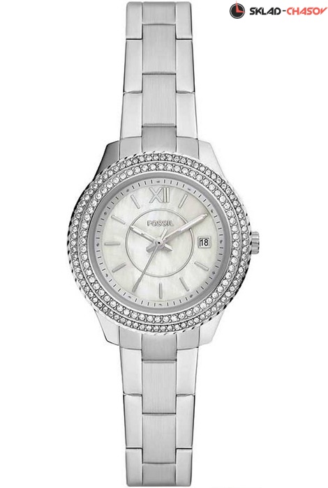 Женские кварцевые наручные часы Fossil ES5137 коллекции Stella. На данной модели отображается дата. Корпус украшен кристаллами. Стальной браслет. Водонепроницаемость WR50 (5 атм).