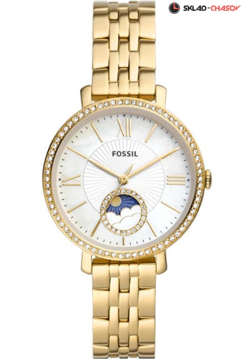 Женские кварцевые наручные часы Fossil ES5167 коллекции Jacqueline. На корпус и браслет нанесено стойкое PVD покрытие. Корпус и циферблат украшены кристаллами. На данной модели присутствует индикатор день/ночь. Водонепроницаемость WR (3 атм).