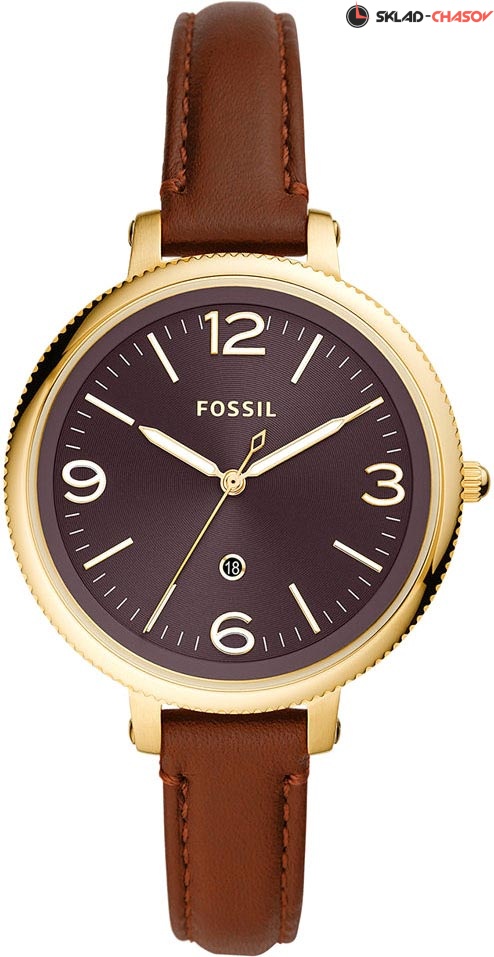 Стильные наручные часы Fossil с круглым корпусом и кожаным ремешком. Присутствует окошко даты. Ремешок с классической застежкой. Гарантия 2 года.