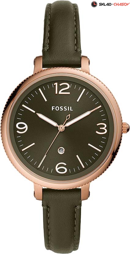 Стильные наручные часы Fossil с круглым корпусом и кожаным ремешком. Присутствует окошко даты. Ремешок с классической застежкой. Гарантия 2 года.