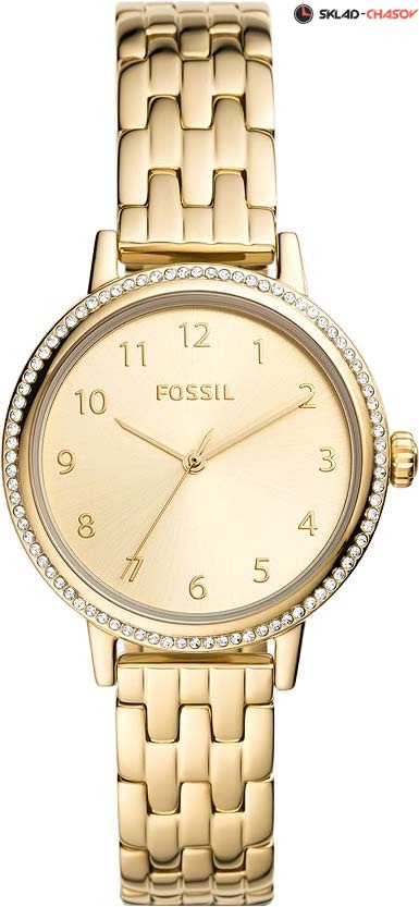 Стильные женские наручные часы Fossil с круглым корпусом, украшенным кристаллами. Гарантия 2 года.