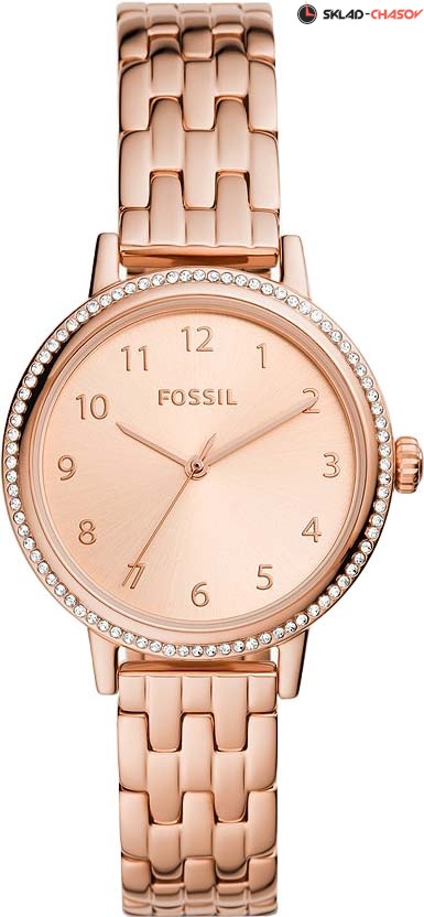 Стильные женские наручные часы Fossil с круглым корпусом, украшенным кристаллами. Гарантия 2 года.
