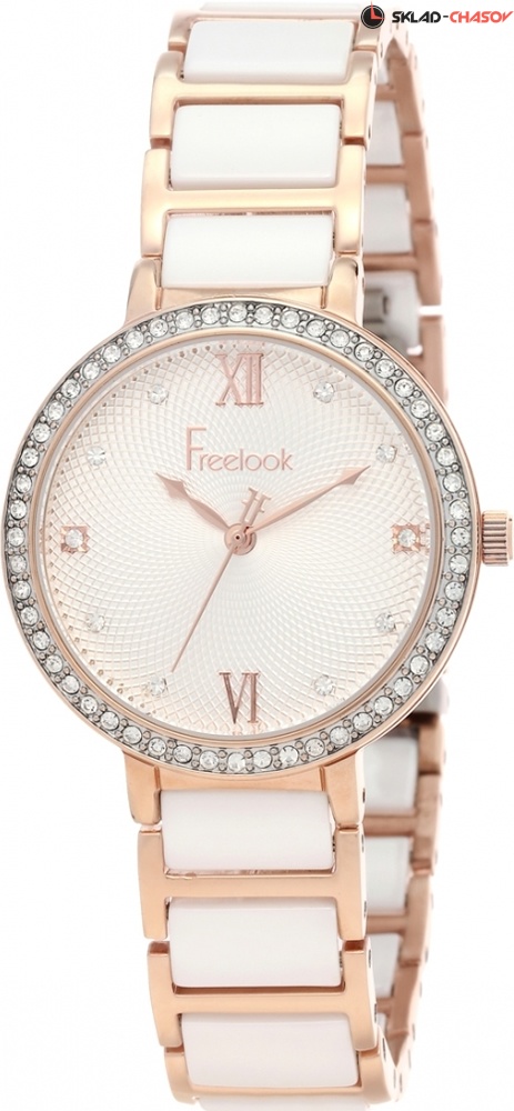 Модные женские наручные часы Freelook из коллекции Belle. Корпус и циферблат украшены кристаллами. Браслет со вставками из высокотехнологичной керамики белого цвета. Японский кварцевый механизм Miyota 2035. Гарантия 1 год.