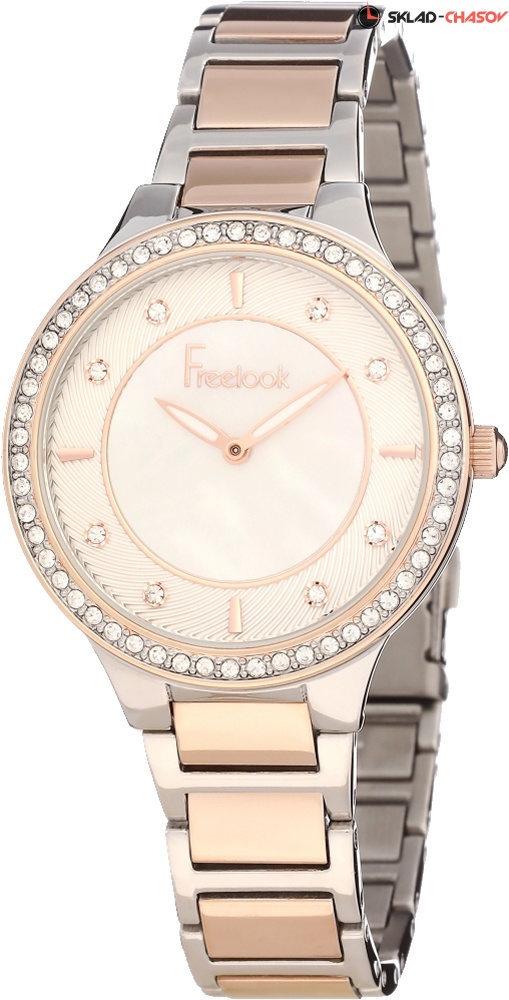 Изящные женские наручные часы Freelok с перламутровым циферблатом, украшенным кристаллами. Корпус украшен кристаллами. Точность хода обеспечивает японский кварцевый механизм. Браслет с раскладывающейся застежкой. Гарантия 1 год.