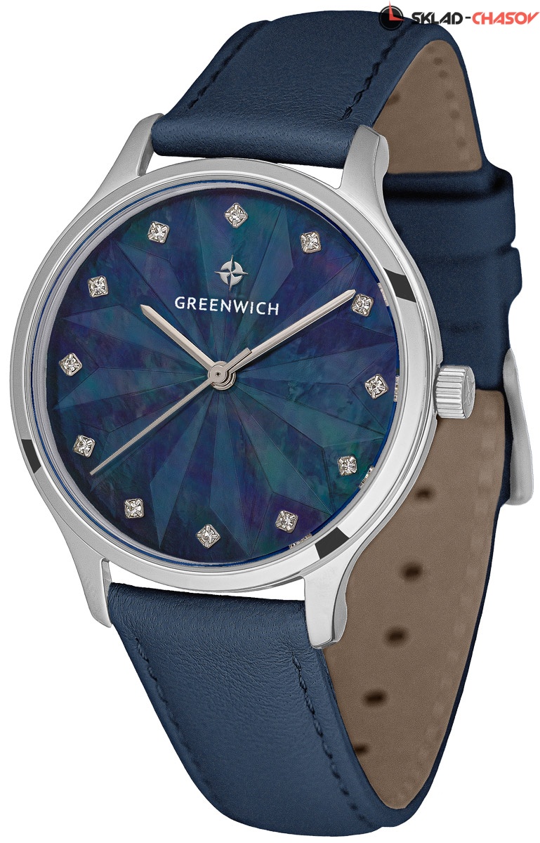 Изящные часы в классическом круглом корпусе диаметром 34 мм. Гипоаллергенная нержавеющая сталь корпуса защищает кварцевый механизм модели с функциями часов, минут и секунд. Циферблат сделан из темно-синего перламутра и украшен необычной гравировкой. Она подчеркивает красоту этого натурального материала и дарит невероятный эффект объема. Фианиты, исполняющие функцию маркеров часов, надежно закреплены в кастах (ювелирный метод крепления).