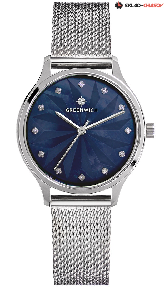 Изящные часы в классическом круглом корпусе диаметром 34 мм. Гипоаллергенная нержавеющая сталь корпуса защищает кварцевый механизм модели с функциями часов, минут и секунд. Циферблат сделан из темно-синего перламутра и украшен необычной гравировкой. Она подчеркивает красоту этого натурального материала и дарит невероятный эффект объема. Фианиты, исполняющие функцию маркеров часов, надежно закреплены в кастах (ювелирный метод крепления).
