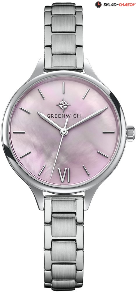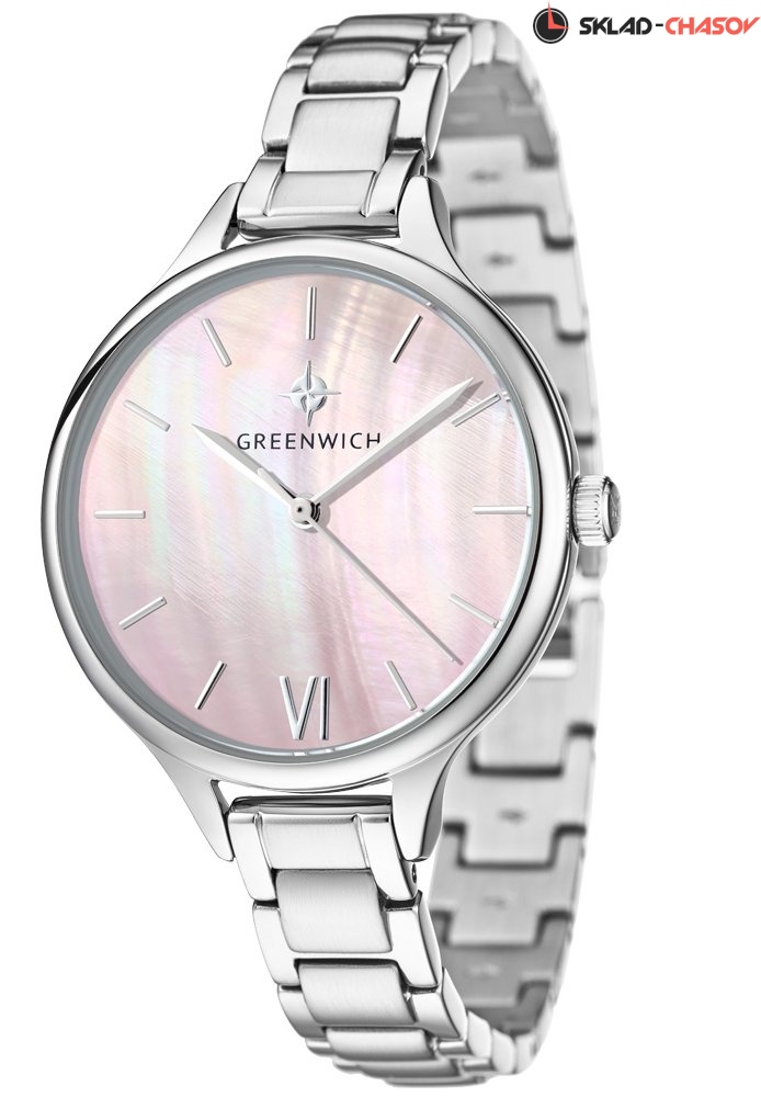 Задняя крышка часов украшена изображениями «розы ветров» и корабля, который является символом марки Greenwich.