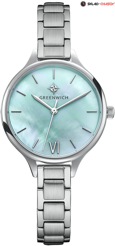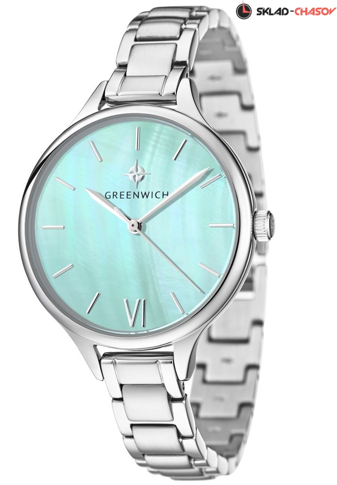 Задняя крышка часов украшена изображениями «розы ветров» и корабля, который является символом марки Greenwich.