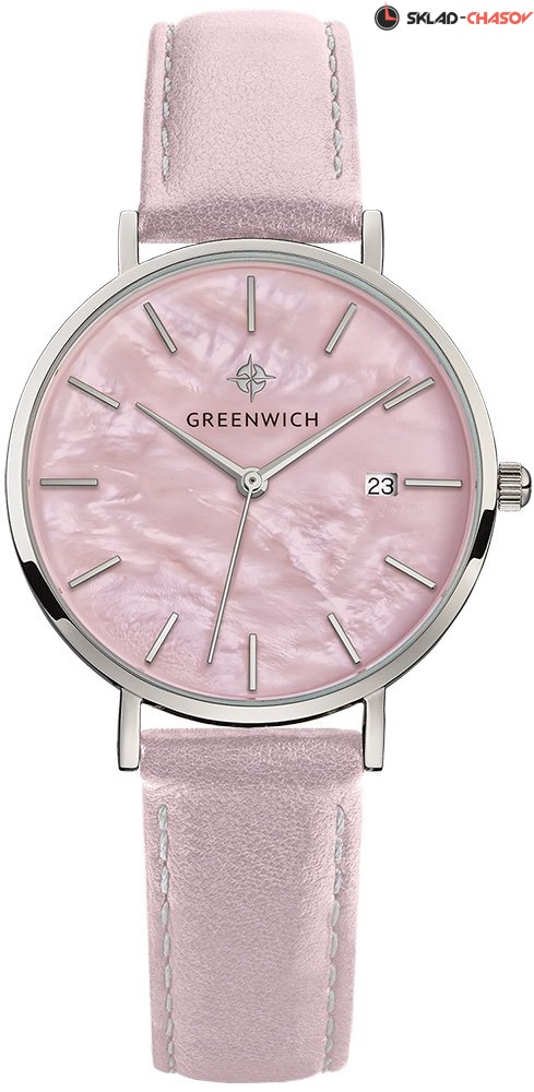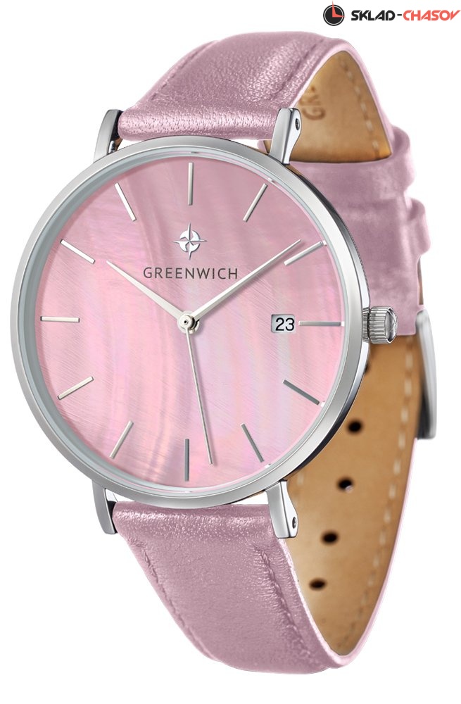 Задняя крышка часов украшена изображениями «розы ветров» и корабля, который является символом марки Greenwich.