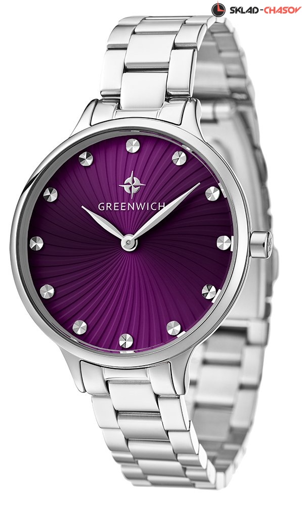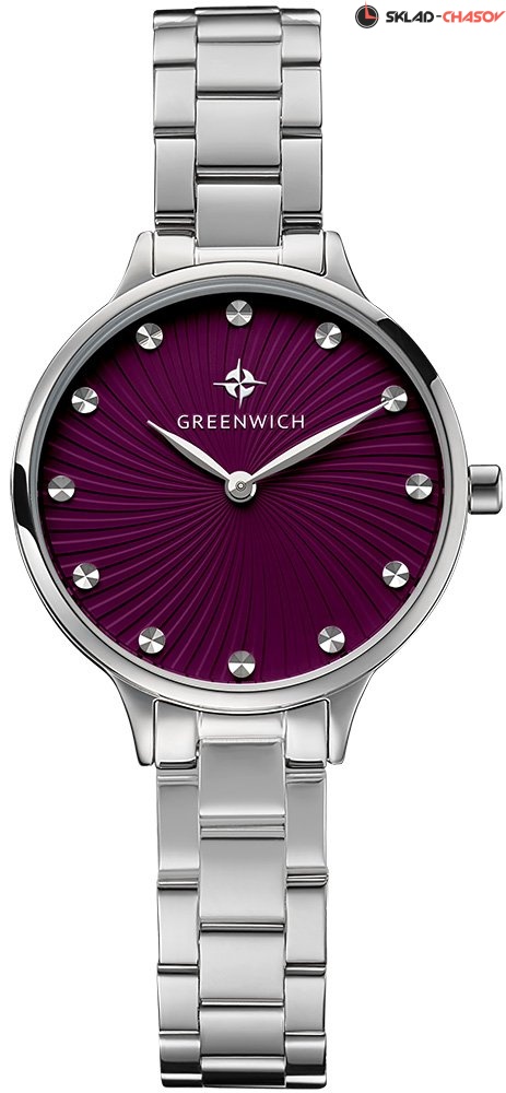 Задняя крышка часов украшена изображениями «розы ветров» и корабля, который является символом марки Greenwich.