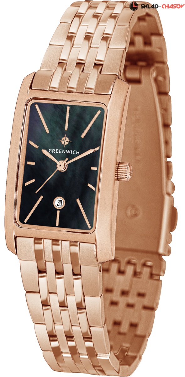 Часы серии Vesta в корпусе прямоугольной формы подчеркивают изящность запястья и точно понравятся тем, кто предпочитает классический стиль или одежду в стиле casual. Часы, минуты, секунды и дата — все это вмещает черный циферблат с деликатным сиянием натурального перламутра. Браслет модели из нержавеющей стали с PVD-покрытием из розового золота привлекает чередованием разных видов полировки: зеркальной и матовой.