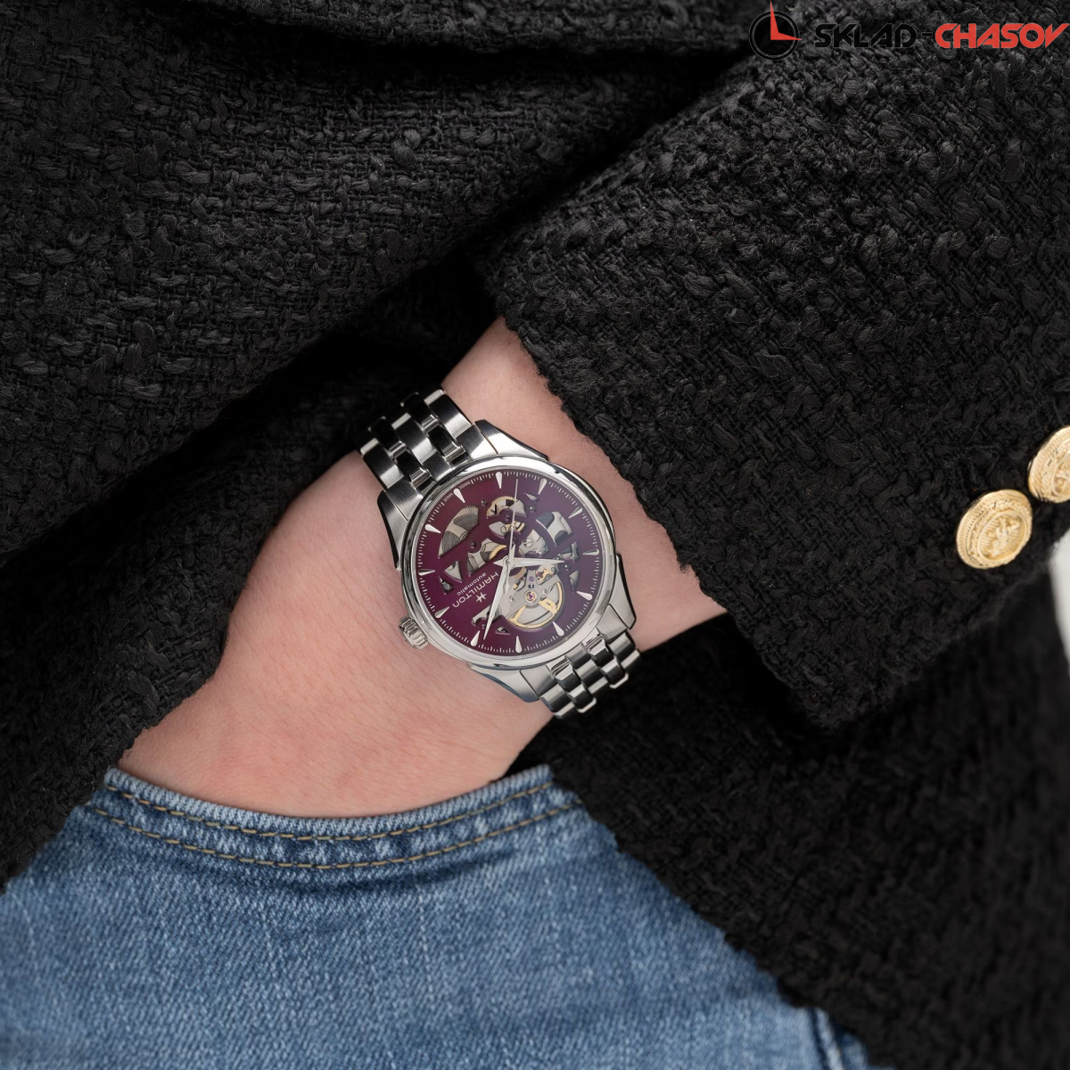 Модель отличается фиолетовым циферблатом скелетонизированной конструкции, раскрывающим тонкую красоту внутренней механики этих часов. Часы оснащены автоматическим механизмом H-10-S с 80-часовым запасом хода и балансовой пружиной Nivachron и изысканным браслетом из нержавеющей стали.