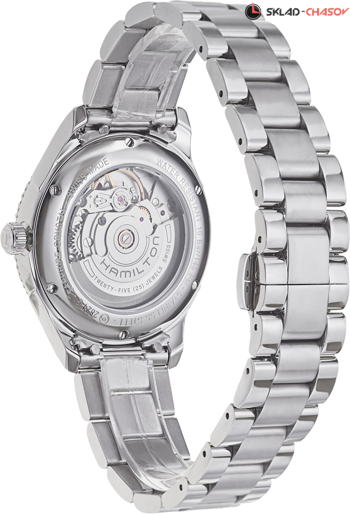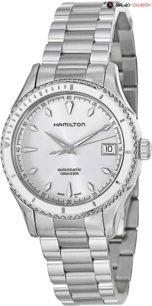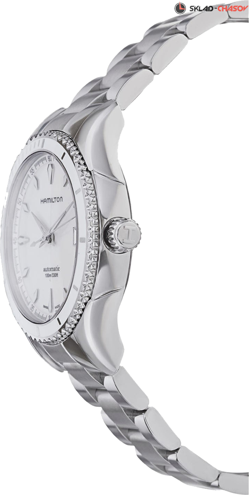 Женские часы с индикацией часов, минут и секунд центральными стрелками. Апертура даты в положении 3 часа. Однонаправленно вращающийся безель с PVD покрытием белого цвета.