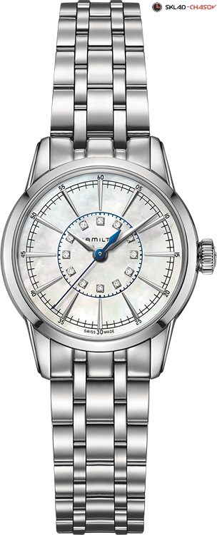 Стильная классика на все времена. Благодаря системе легкой смены ремешка, можно играть цветовыми решениями модели - браслет/ремень. Индикация часов, минут и секунд центральными стрелками. Циферблат выполнен из натурального перламутра и украшен 12 бриллиантами.