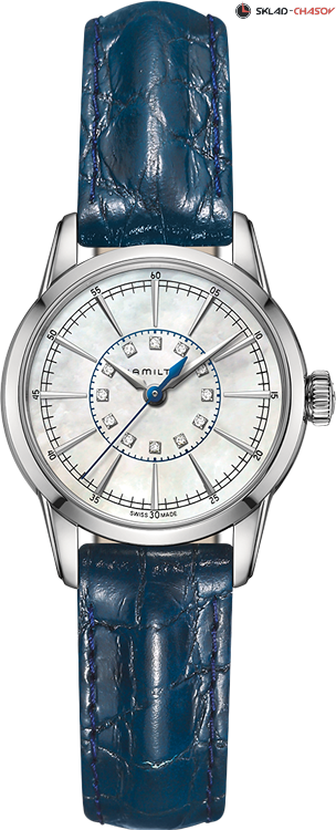 Стильная классика на все времена. Благодаря системе легкой смены ремешка, можно играть цветовыми решениями модели - браслет/ремень. Индикация часов, минут и секунд центральными стрелками. Циферблат выполнен из натурального перламутра и украшен 11 бриллиантами.