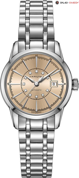 Стильная классика на все времена. Благодаря системе легкой смены ремешка, можно играть цветовыми решениями модели - браслет/ремень. Индикация часов, минут и секунд центральными стрелками. Циферблат выполнен с узором Sunray и украшен 11 бриллиантами. Окошко даты в положении 3 часа.