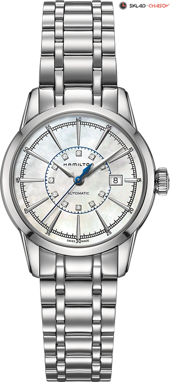 Стильная классика на все времена. Благодаря системе легкой смены ремешка, можно играть цветовыми решениями модели - браслет/ремень. Индикация часов, минут и секунд центральными стрелками. Циферблат выполнен из натурального перламутра и украшен 11 бриллиантами. Окошко даты в положении 3 часа.