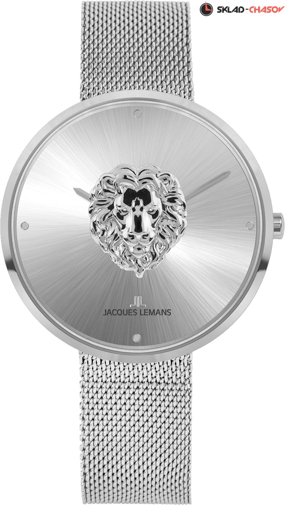 Дизайнерские часы от Jacques Lemans - это украшение со смыслом. Серебристый циферблат с полировкой служит фоном для главного элемента в форме головы льва с роскошной гривой. Символ мужества и власти, царь зверей, выполнен из нержавеющей стали и помещён между двумя ударопрочными стёклами Crystex. Куполообразная форма внешнего стекла придаёт циферблату невероятный эффект объёма. Второе стекло защищает стрелки часов, часовую и минутную. Модель установлена в 36-миллиметровый корпус из гипоаллергенной нержавеющей стали. Миланский браслет часов одновременно гибкий и очень прочный. Специальная застежка позволяет самостоятельно регулировать его длину.