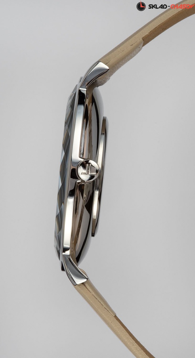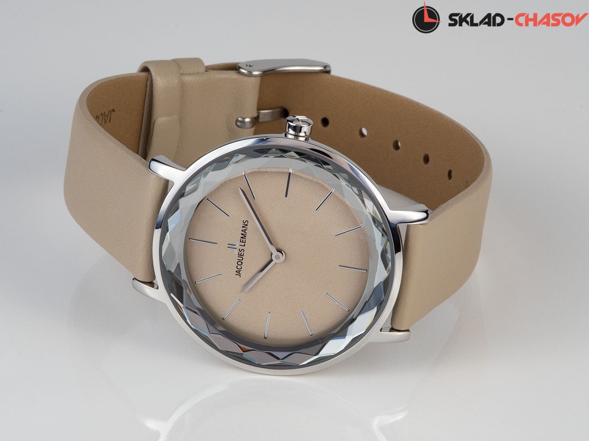 Элегантная женская модель из серии York. Круглый корпус из нержавеющей стали диаметром 37 мм обрамляет бежевый циферблат с полировкой в виде солнечных лучей. Хорошо читаются лаконичные риски и стрелки часов и минут. Настоящее украшение модели — оригинальный объемный безель, сверкающий множеством граней. В часах установлено ударопрочное минеральное стекло Crystex. Бежевый ремешок выполнен из натуральной кожи. Эти часы - идеальный аксессуар для успешного и стильного образа.