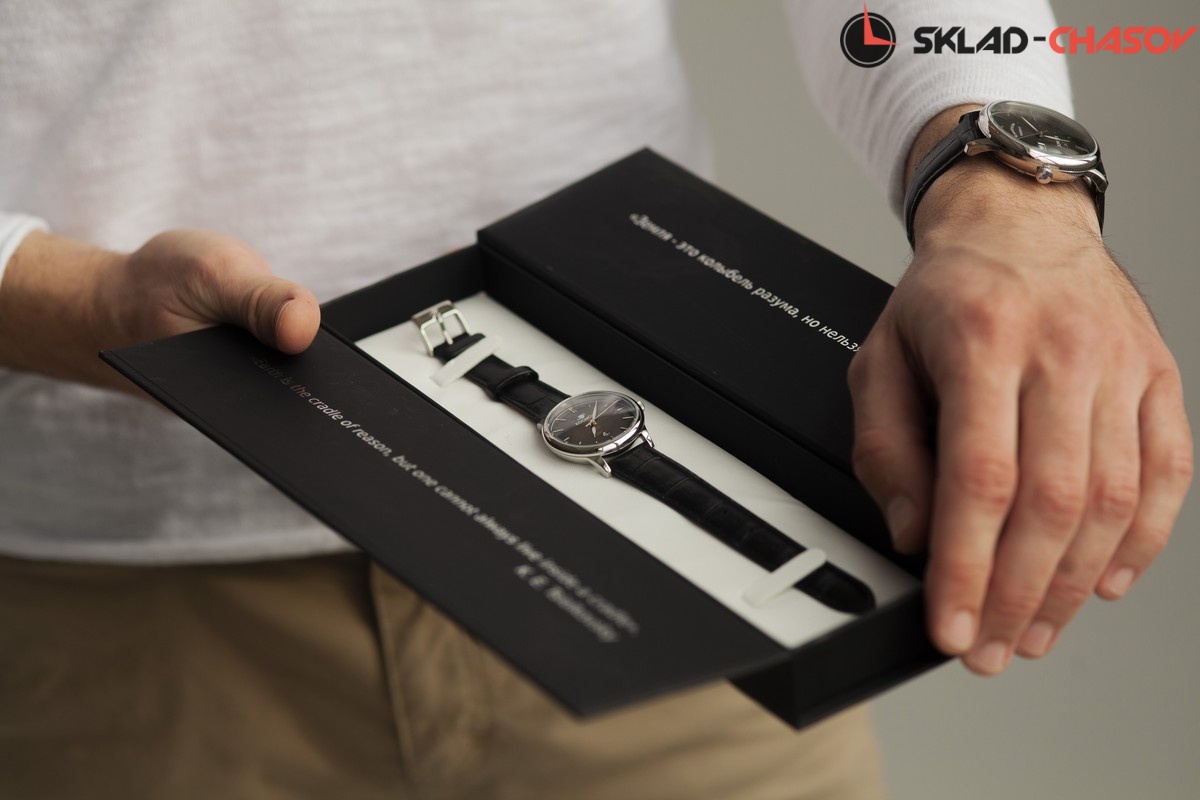 Часы Космос упакованы в стильную подарочную коробку. Ее матовое бархатистое покрытие soft touch («мягкий на ощупь») обеспечивает приятные тактильные ощущения и сохранение превосходного внешнего вида на долгое время.