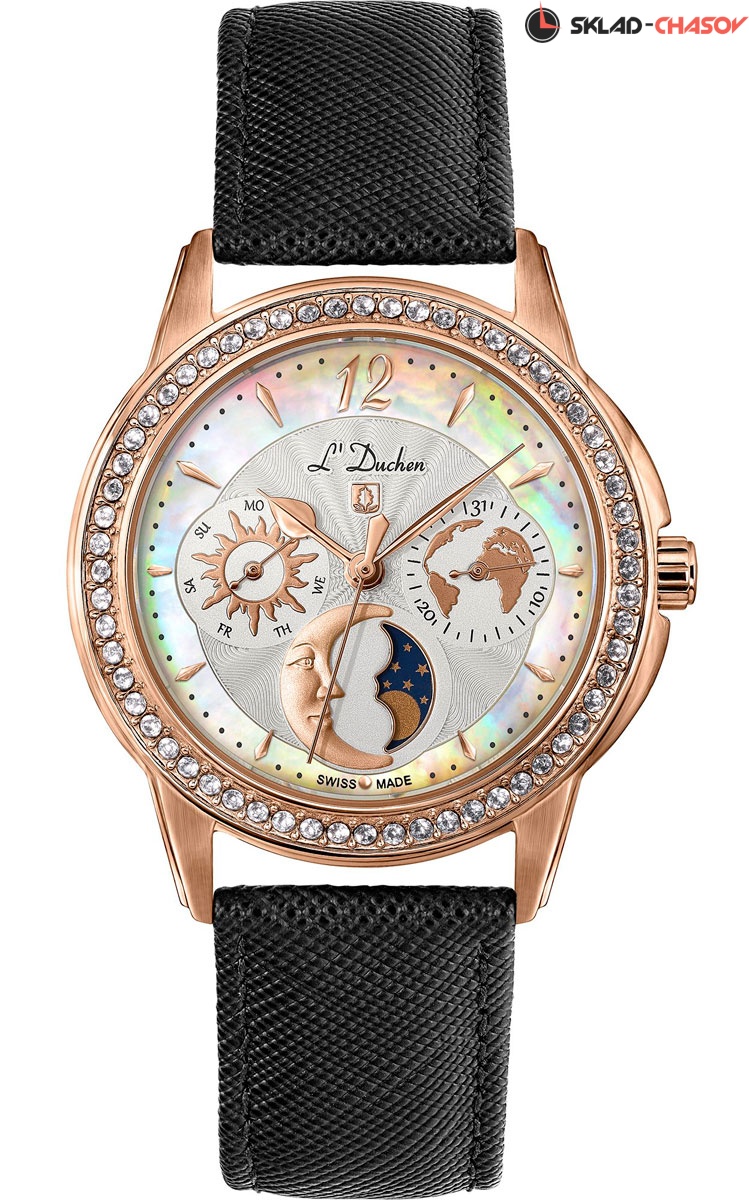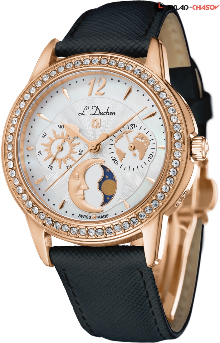 • Циферблат многослойный с гильошированием, внешний край выполнен из перламутра. Накладные индексы и элементы оформления.