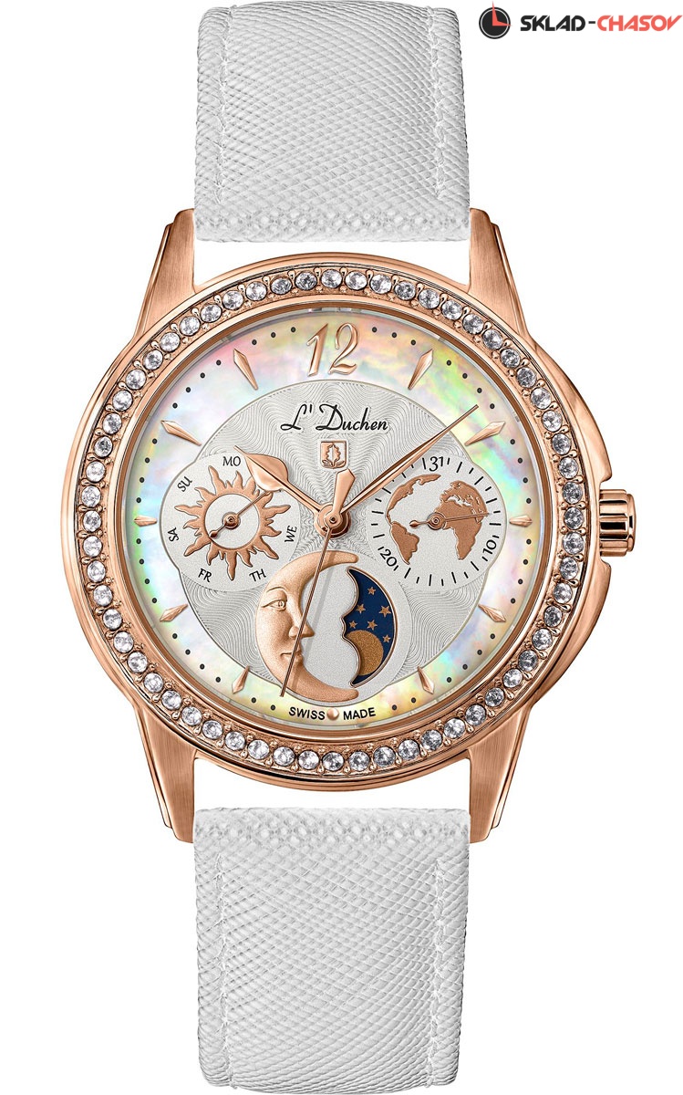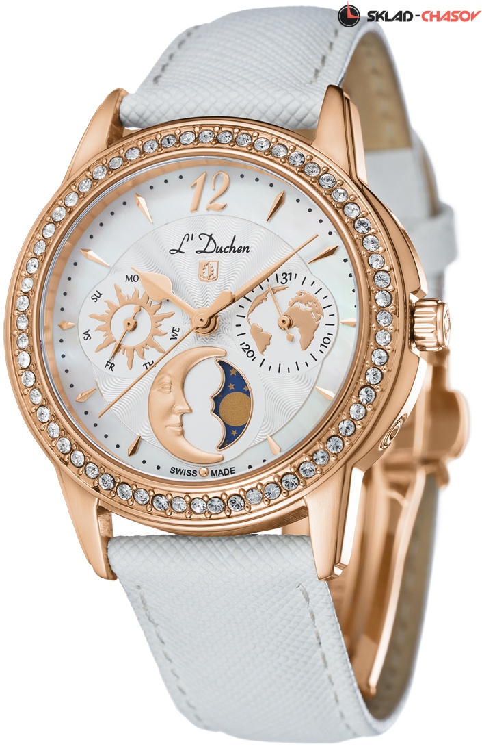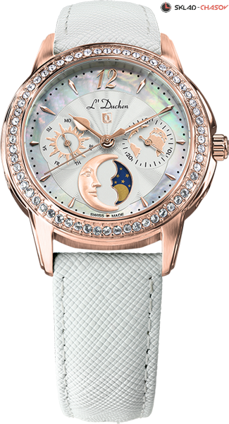 • Циферблат многослойный с гильошированием, внешний край выполнен из перламутра. Накладные индексы и элементы оформления.