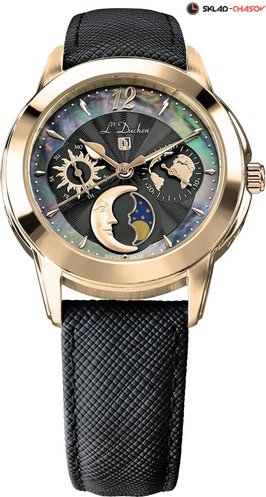 • Швейцарский кварцевый механизм RONDA, калибр Normtech 706.3, на 5 камнях. • Точность хода с погрешностью не более -10/+20 сек. в месяц • Элемент питания №371 со сроком службы 60 месяцев. • Центральные часовая, минутная и секундная стрелки. • Стрелочные указатели даты, дня недели и месяца. • Индикатор лунных фаз. • Индикация при помощи движения секундной стрелки о низком уровне заряда батарейки E.O.L.