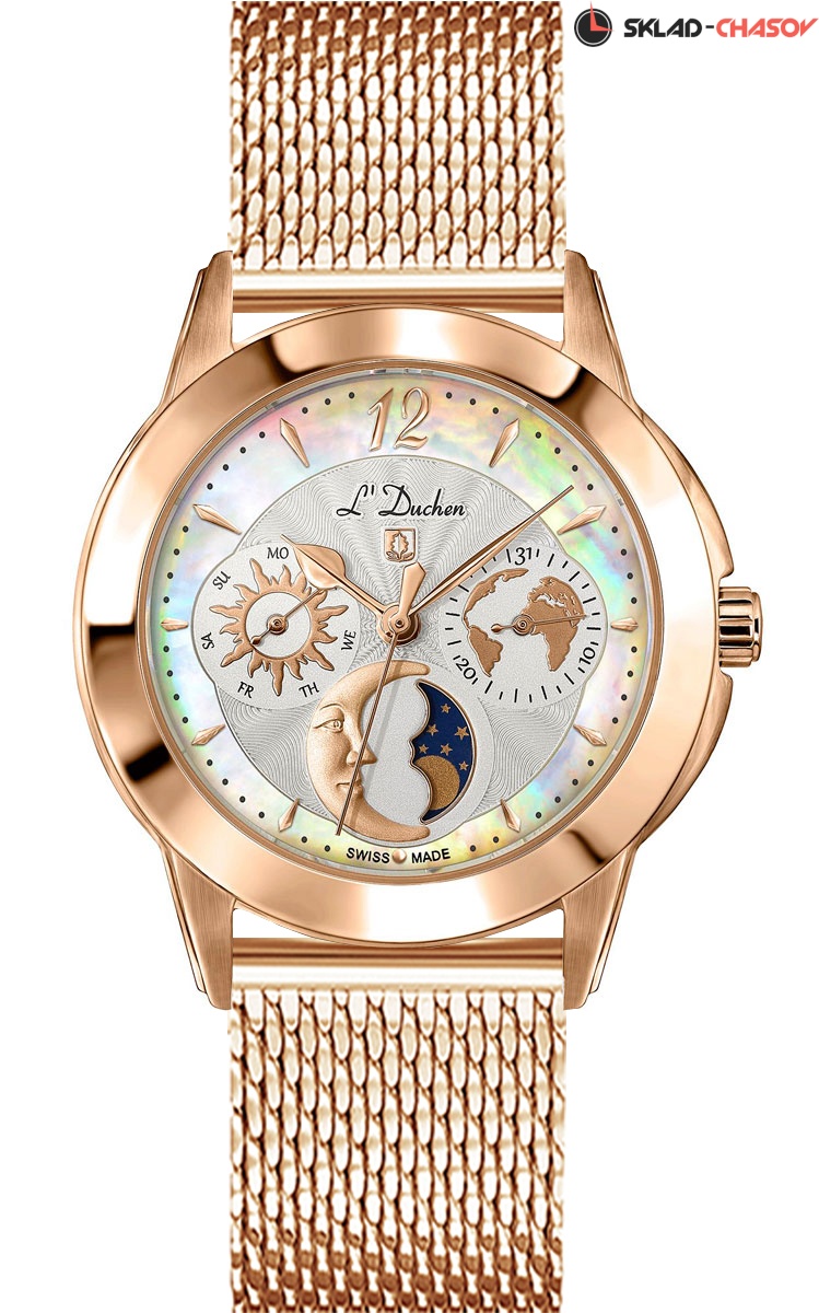 • Швейцарский кварцевый механизм RONDA, калибр Normtech 706.3, на 5 камнях. • Точность хода с погрешностью не более -10/+20 сек. в месяц • Элемент питания №371 со сроком службы 60 месяцев. • Центральные часовая, минутная и секундная стрелки. • Стрелочные указатели даты, дня недели и месяца. • Индикатор лунных фаз. • Индикация при помощи движения секундной стрелки о низком уровне заряда батарейки E.O.L.