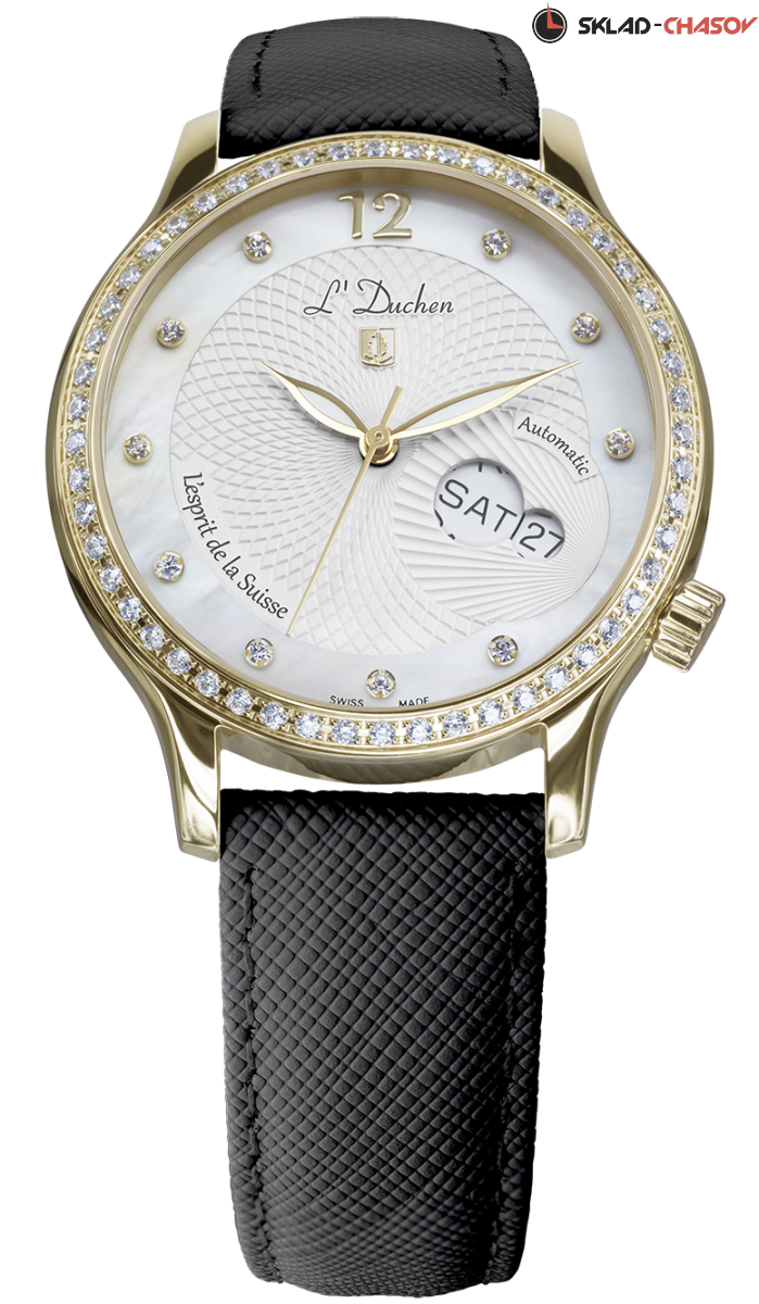 • Швейцарский механизм с автоматическим подзаводом ETA, калибр 2836-2. • Запас хода 38 часов, частота колебаний баланса 28 800 пк/час, 25 камней. • Точность хода не хуже -15/+25 сек. в сутки. • Центральные часовая и минутная, секундная стрелки. • Дата и день недели в двойной апертуре непривычной формы на «4 часах».