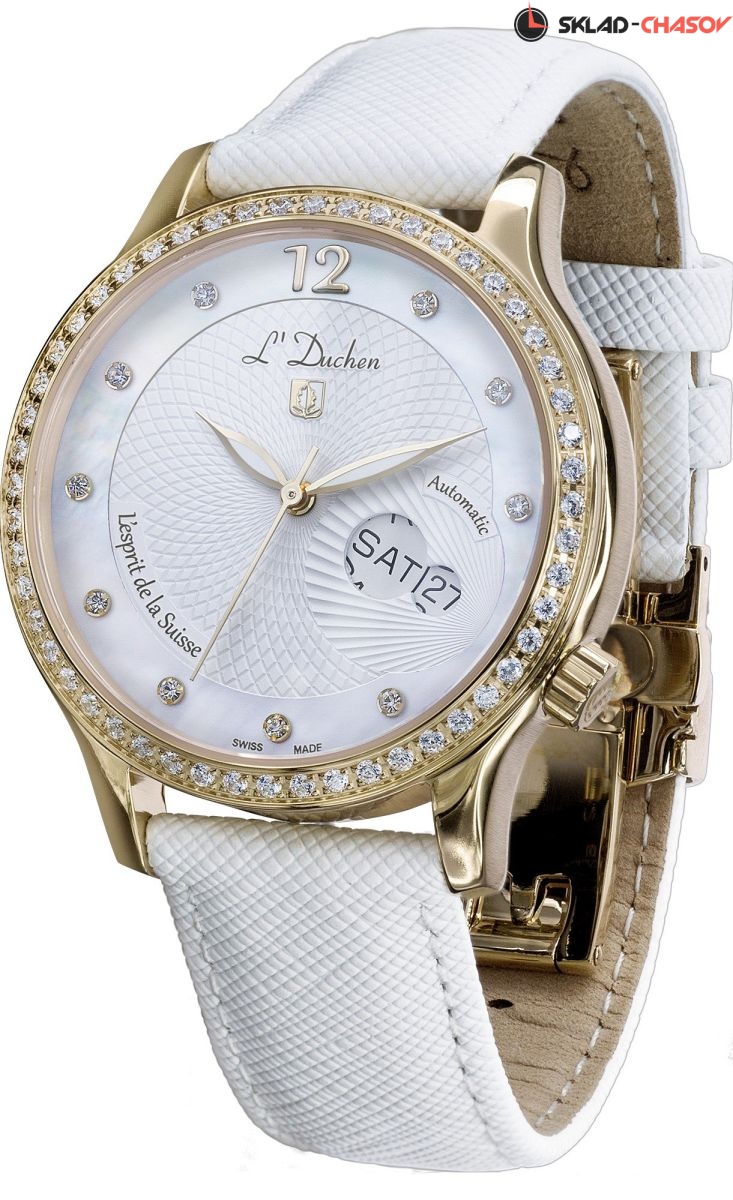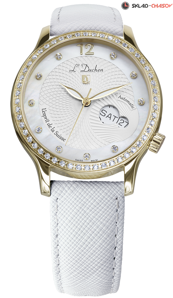 • Швейцарский механизм с автоматическим подзаводом ETA, калибр 2836-2. • Запас хода 38 часов, частота колебаний баланса 28 800 пк/час, 25 камней. • Точность хода не хуже -15/+25 сек. в сутки. • Центральные часовая и минутная, секундная стрелки. • Дата и день недели в двойной апертуре непривычной формы на «4 часах».