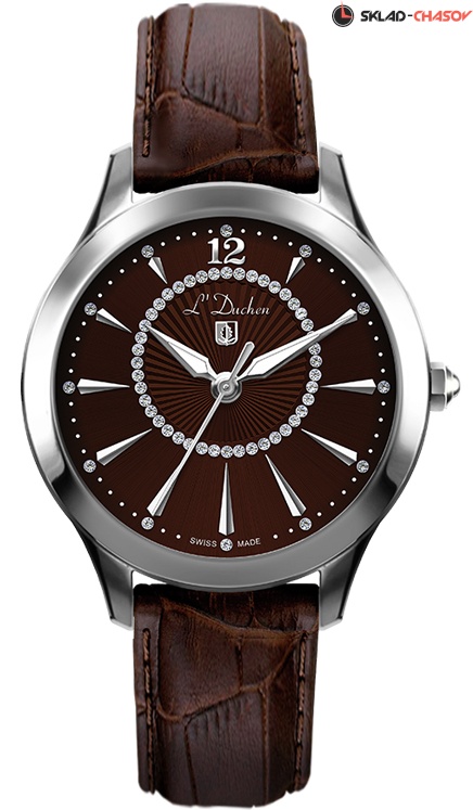 Классические кварцевые часы серии Viva подчеркнут изящество женского запястья. Корпус сделан из нержавеющей стали с полировкой. Для установки стрелок в нужную позицию предназначена удобная в использовании восьмигранная заводная головка. Изюминкой коричневого циферблата является легкая асимметрия – центр циферблата визуально смещен вверх. Этот эффект достигается благодаря рисунку в виде солнечных лучей и сияющим фианитам, которые обрамляют гильоше. Накладные риски выполнены вручную – лучи света играют на их гранях при каждом движении руки. Хорошо читаются стрелки часов и минут мечеобразной формы. В модели установлено сапфировое стекло – оно надолго сохранит внешний вид часов, не допуская появление микроцарапин. Ремешок из натуральной кожи коричневого цвета дополнен надежной застежкой–клипсой, она поможет предотвратить падение часов при случайном расстегивании. Застежка украшена логотипом бренда L’Duchen, дубовым листом, символом мудрости и долговечности.