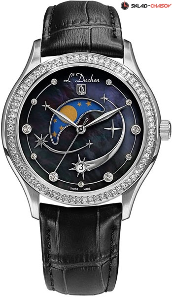 • Циферблат выполнен из перламутра. Объемные накладные элементы оформления. Инкрустация цирконами в качестве часовых индексов.