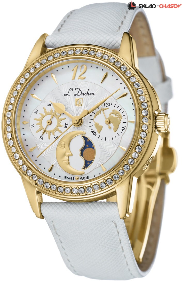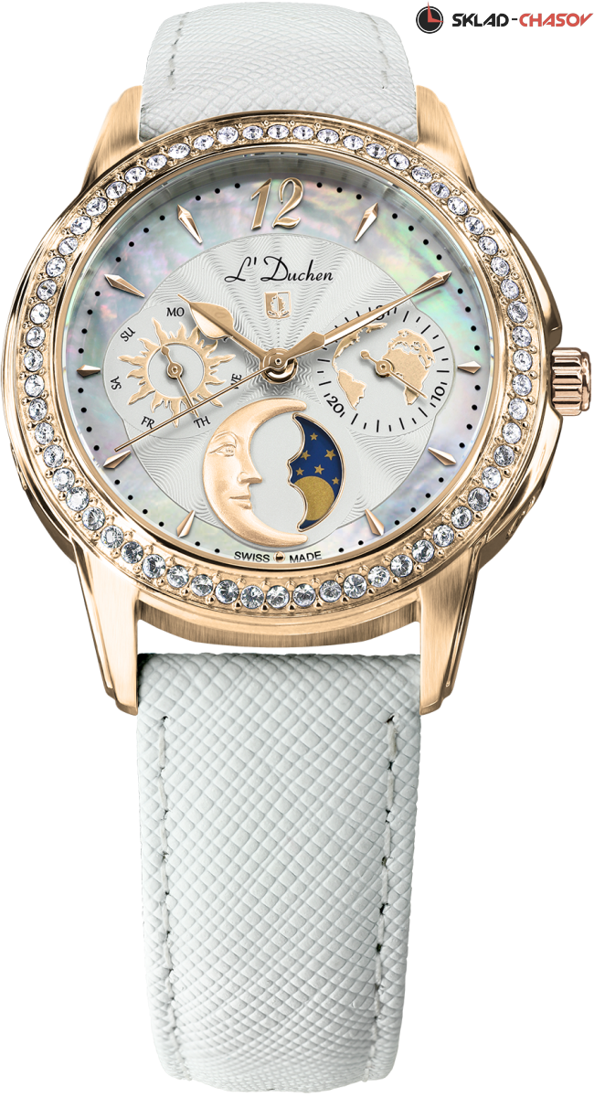 • Циферблат многослойный с гильошированием, внешний край выполнен из перламутра. Накладные индексы и элементы оформления.