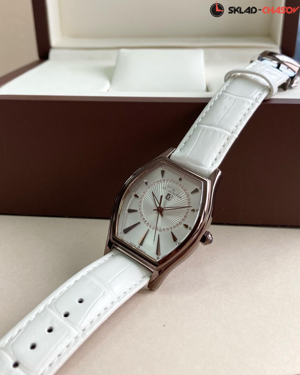 Белый ремешок из натуральной кожи дополняет модель. Раскладывающаяся застежка из нержавеющей стали с двумя фиксаторами защищает часы от случайного падения.