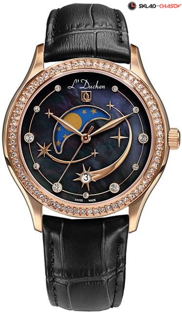 • Циферблат выполнен из перламутра. Объемные накладные элементы оформления. Инкрустация цирконами в качестве часовых индексов.