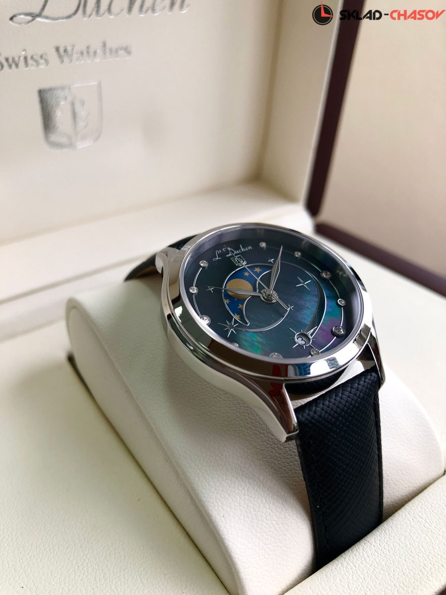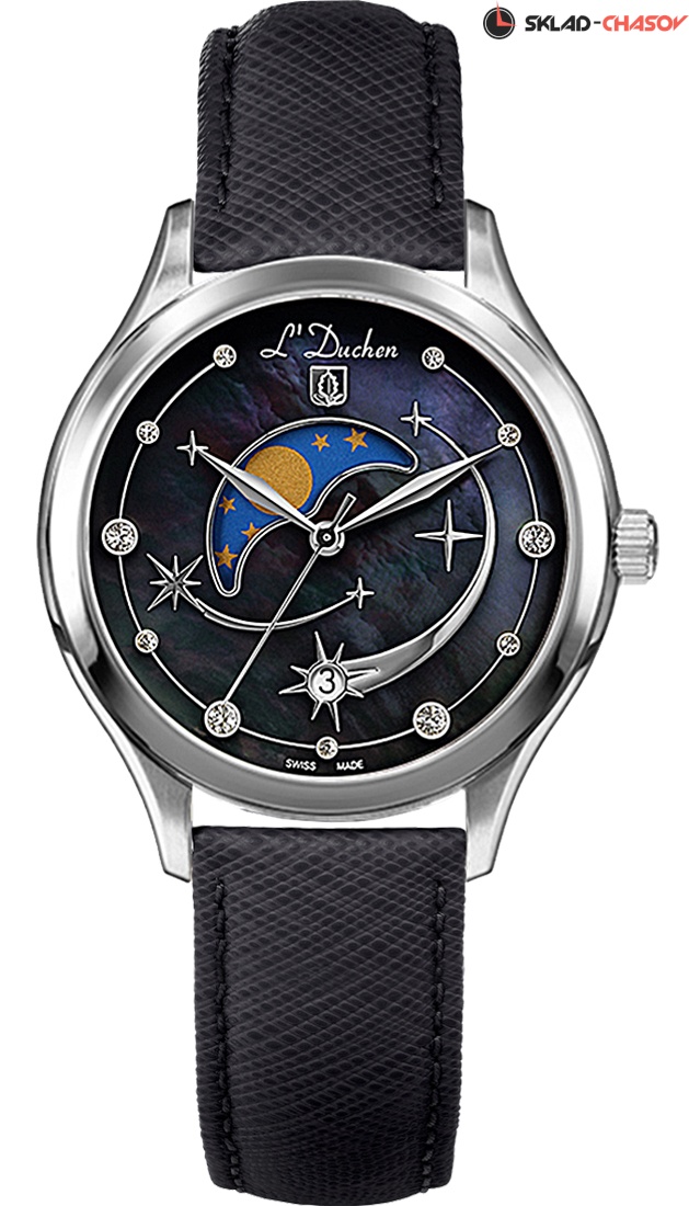 По задумке дизайнеров на черном циферблате часов мы можем наблюдать завораживающее космическое явление: метеорный поток Персеиды. Падающие «звезды» присутствуют в виде фианитов разного размера и накладных элементов из стали. В верхней части циферблата из натурального перламутра расположен индикатор фаз луны, который элегантно декорирован металлической рамкой. На шести часах размещен указатель даты, оформленный в виде звезды. Часы Perceides прекрасно можно сочетать с другими аксессуарами и украшениями.