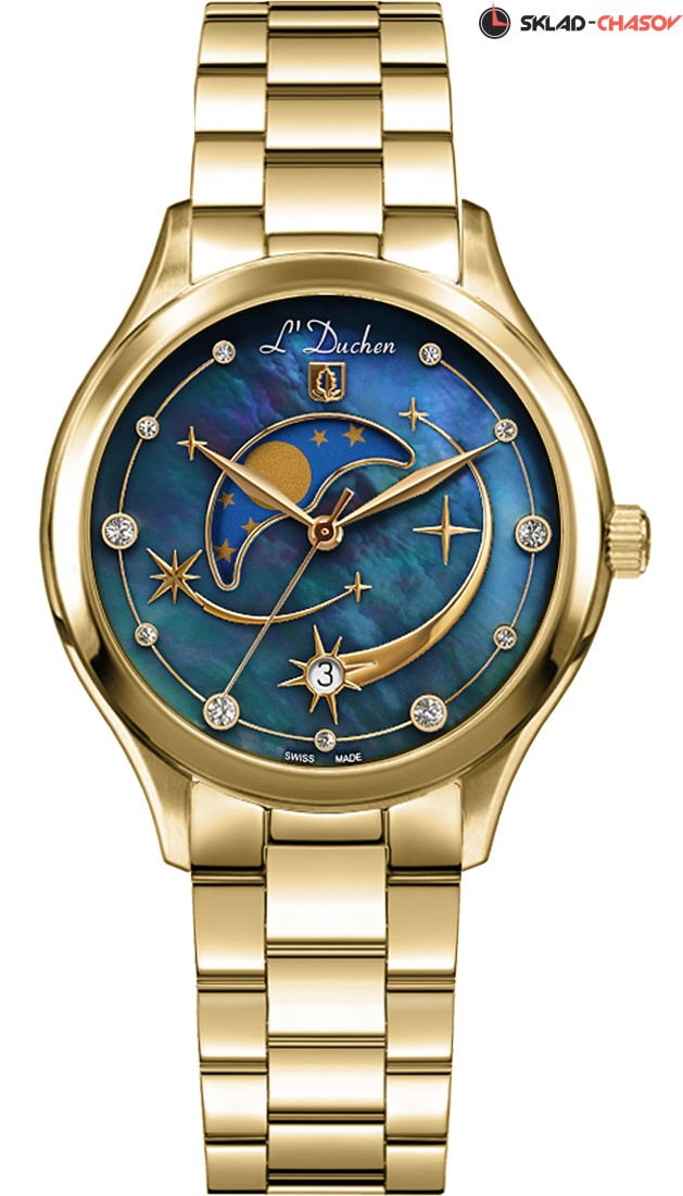 По задумке дизайнеров на циферблате часов синего цвета мы можем наблюдать завораживающее космическое явление: метеорный поток Персеиды. Падающие «звезды» присутствуют в виде фианитов разного размера и накладных элементов из стали. В верхней части циферблата из натурального перламутра расположен индикатор фаз луны, который элегантно декорирован металлической рамкой. На шести часах размещен указатель даты, оформленный в виде звезды. Часы Perceides прекрасно можно сочетать с другими аксессуарами и украшениями.