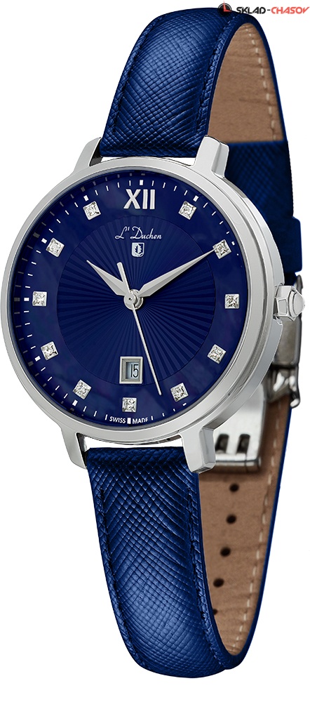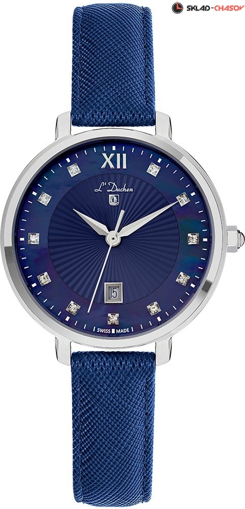 Женские кварцевые часы. Швейцарский механизм Ronda. Центральные часовая, минутная и секундная стрелки. Апертура даты в позиции 6 часов. Черный перламутровый циферблат украшен кристаллами в местах часовых меток. Корпус выполнен из полированной нержавеющей стали. Диаметр корпуса составляет 32 мм. Кожанный ремешок. Устойчивое к возникновению царапин сапфировое стекло. Водостойкость WR 50 (мытье рук, дождь).