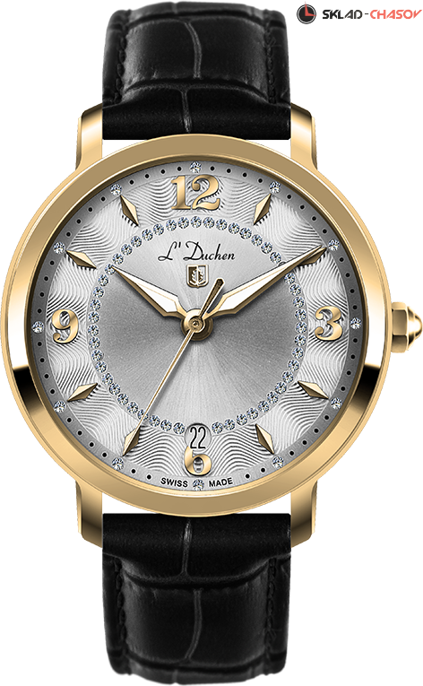 Часы серии Sonata — идеальный ансамбль классических линий и современных акцентов. Тонкий корпус часов сделан из нержавеющей стали с PVD-покрытием из желтого золота и интересным сочетанием полированных и матовых частей. За точную работу модели отвечает швейцарский кварцевый механизм Ronda. Стрелки часов и минут на белом циферблате хорошо читаются благодаря изящной мечеобразной форме. Они визуально выделены волнообразным гильоше и сияющими фианитами, линия которых повторяет форму корпуса. Накладные риски и арабские цифры выполнены вручную. В позиции «6 часов» расположено окошко даты. В модели установлено сапфировое стекло. Оно надолго сохранит внешний вид часов, сопротивляясь появлению микроцарапин. Ремешок выполнен из натуральной кожи черного цвета с прошивкой. Удобная застежка- клипса поможет предотвратить падение часов при случайном расстегивании. Дубовый лист, логотип бренда L’Duchen, украшает застежку модели. Часы серии Sonata — важный элемент вашего стиля, этот аксессуар хорошо подходит для любого образа, от делового до вечернего.