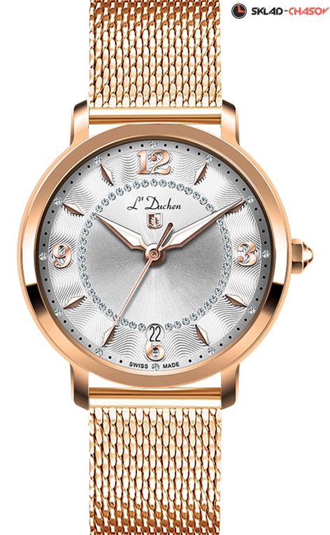 • Циферблат серебристый с накладными часовыми маркерами и инкрустацией кристаллами Swarovski.