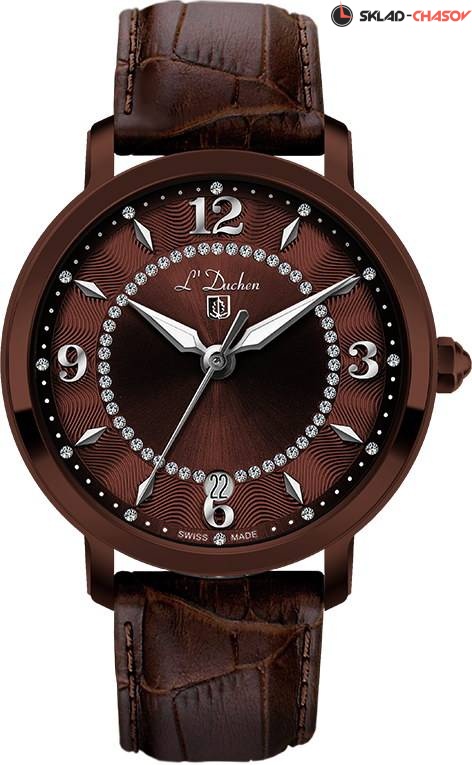 Коричневый циферблат часов украшен фианитами и полированными индексами, которые интересно играют переливами света. Дополняет рисунок волнообразный гильоше на центральной части циферблата. Каждый индекс и цифра выполнены вручную. На уровне шести часов расположен указатель даты. Часовая и минутная стрелки мечеобразной формы смотрятся объемно и хорошо читаются.